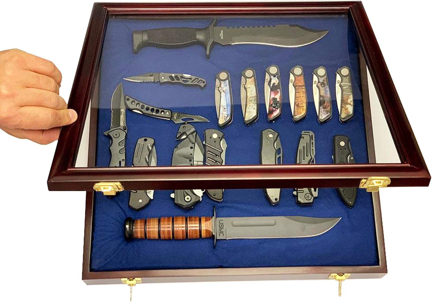 Large knife display case storage cabinet w/shadow box on the top, solid wood:kc7 | ebay. When folded 6 x 1.5 cm (2.4 x 0.6); Showing an inexpensive knife display i built to get the sharp things out of the boxes and out where they can be enjoyed while still. Zhuolang pocket knives case, folding knives display case, small knife storage cases, folding knife storage box with 14 slots, hand tools. Enjoy free shipping on most stuff, even big stuff. Check out our knife display case selection for the very best in unique or custom, handmade pieces from our shops. Premium quality jewelry isn't necessarily made from gold or silver. Professional quality, handcrafted display cases. If you collect knives, it's always a challenge finding the best way to store or display your knife collection. The spacing is designed to hold a variety of pocket knife sizes and stands about 12 tall spacing horizontally between pegs is 1, 1.5, 2, 2.5, 3 spacing vertically. Pocket knife display case cabinet shadow box, glass door, wall mountable (cherry finish). This case has enough space to hold 22/23 pocket knives. The spacing is designed to hold a variety of pocket knife sizes and stands about 12 tall spacing horizontally between pegs is 1, 1.5, 2, 2.5, 3 spacing vertically.